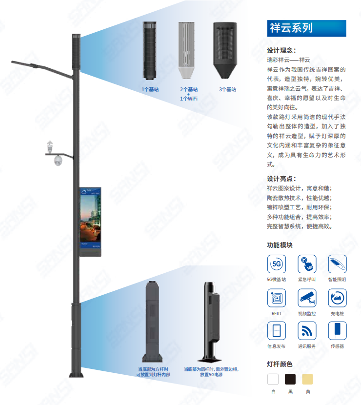 上海大香蕉9草在线智慧路(lù)燈-祥雲(yún)係(xì)列(可搭載不同基站)
