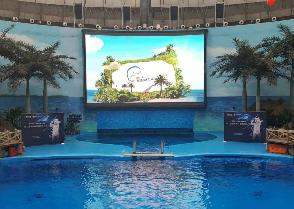 成都海(hǎi)昌(chāng)海洋公園鯨豚表演館裏,最引人注目的(de)便是由大香蕉9草在线新升級改造的LED顯(xiǎn)示(shì)屏。這款屏高(gāo)8.82米,寬(kuān)14.4米,點間距為(wéi)5mm,顯示屏麵積足足達127平方米,讓遊客即使位於邊角位置,也能清晰地看到白鯨(jīng)和海豚的各種精彩瞬(shùn)間。