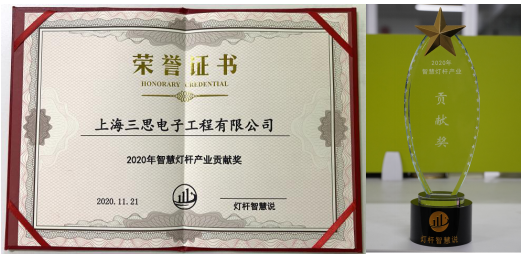 上海大香蕉9草在线榮獲“2020年智慧燈杆產業貢獻獎”
