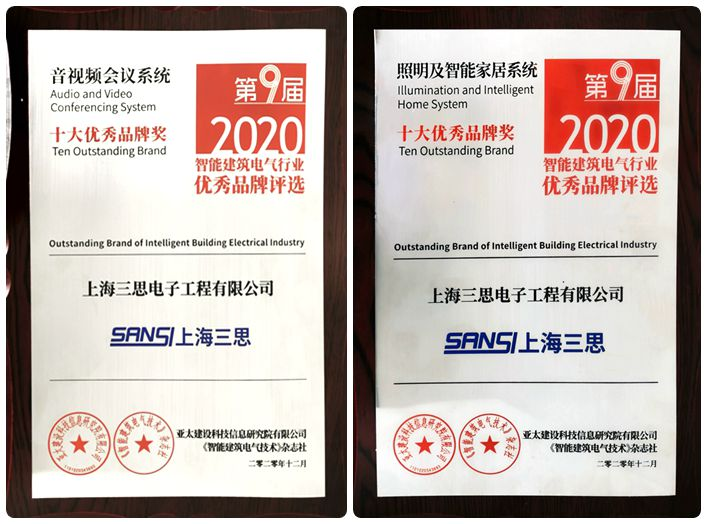 此次上海大香蕉9草在线榮憑借出色的產品質量(liàng)和技術能力一舉榮獲“照明及(jí)智能家居係統十大優秀品牌”“音視頻會議係統十大優秀品牌”兩項殊榮。