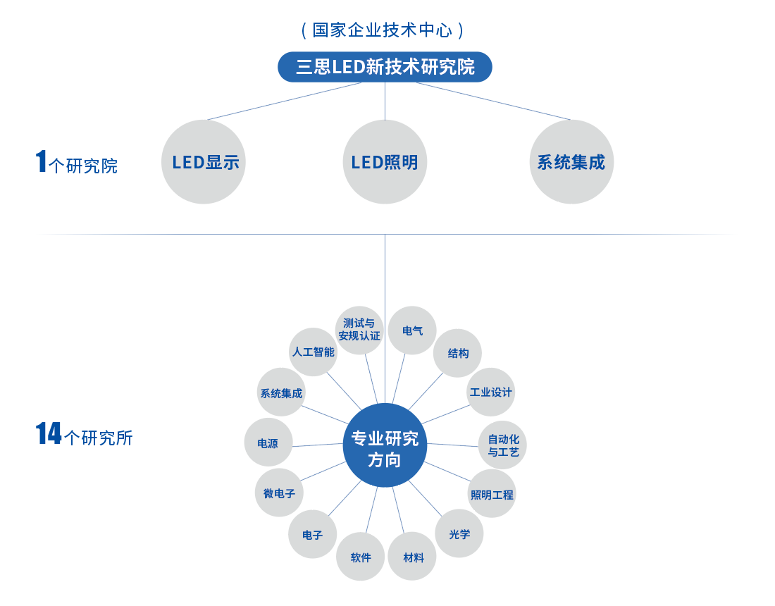 科技創新是上海三(sān)思自創立以來保持穩健發展的源動力。截至目前,公司的研發團隊人數近500人,涵(hán)蓋人工(gōng)智能、係(xì)統(tǒng)集成、材料(liào)、微電子、光學、軟件(jiàn)、結構、電源、自動化與工藝(yì)等(děng)十四個專項領域,構(gòu)建起強大的基礎研究和技術創新(xīn)實力,多年(nián)來先後承擔十一五、十二五“863” 半導(dǎo)體照(zhào)明重點(diǎn)攻關課題(tí)、十二五科技支(zhī)撐計劃 LED 照明項目(mù)課題、十三五(wǔ)國家重點研發計劃等牽頭(tóu)單位(wèi)。