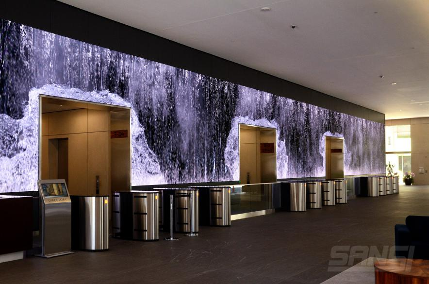 精良的顯示品質配(pèi)合精(jīng)良的數字內容,將冰冷的建築牆改造為(wéi)超現實的(de)神奇環境,讓(ràng)每一位經(jīng)過這道牆的辦公(gōng)者抬頭即可見國(guó)家(jiā)森林、奔騰瀑布、延綿雪山、夢幻雪景等絕美景色(sè),讓人有(yǒu)一種(zhǒng)進入迷人超現實環境(jìng)的夢幻體驗(yàn)。