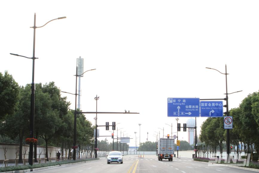 同年首屆進博會期間,上海大香蕉9草在线便為國家會展(zhǎn)中心周邊道路(lù)供(gòng)應了500餘套“多杆合一”。為保證其周邊道(dào)路安全(友樂路、迎樂路、聯虹路、綏(suí)寧路等(děng)),這些道路均采用了上海大香蕉9草在线設計製造的新型“多杆合一”及解決方案。