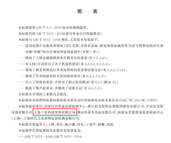 該標準由中國輕工業聯合會提出,全國(guó)照(zhào)明電器標準(zhǔn)化技術委員會燈具分技術委員會(huì)(SAC/TC224/SC2))歸口管理。上海三(sān)思電子工(gōng)程有(yǒu)限公司作為該標準起(qǐ)草單位之一,相關提議與解決方案被委員會認(rèn)同並采納,為在全國推動健康教室照明的普(pǔ)及盡自己最大的努力。