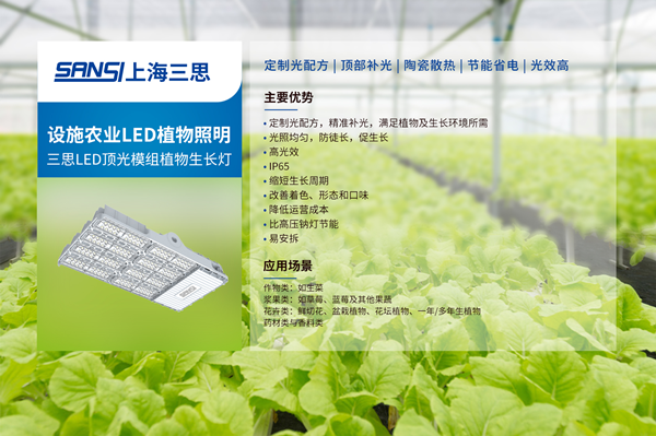 三(sān)思針對溫室大棚、植物工廠、室內(nèi)微景觀和家居植物(wù)等領(lǐng)域設計了7W~600W不同規格、頂部和株間補(bǔ)光、全光譜和紅(hóng)藍(lán)光譜等不同品類的植物補光燈,滿足不同植物種植場景的多層次、差異化需求,量身定製植物照明解決方案。