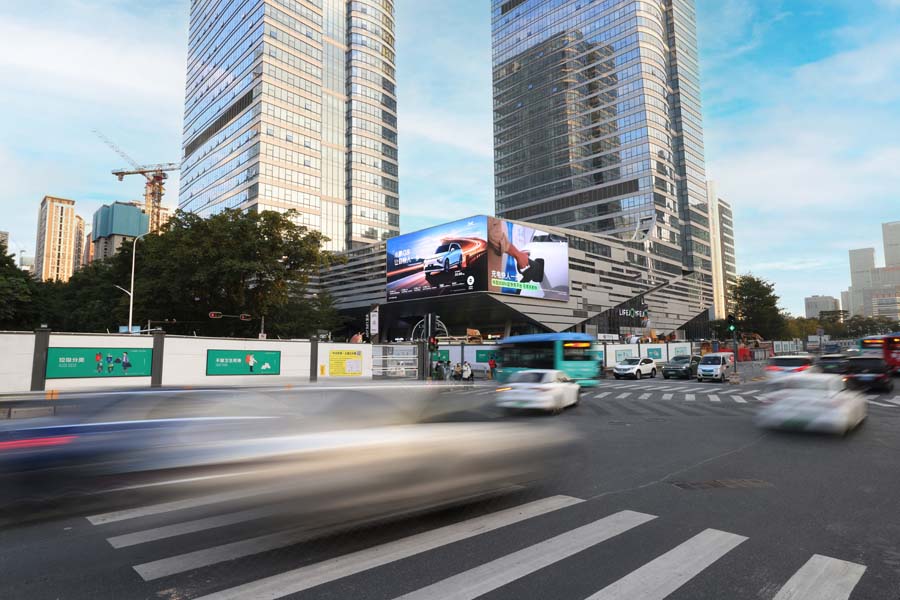 三(sān)思裸眼3D屏,具備鮮豔的色彩、細膩的細節、高清的畫麵,為往來觀眾造就了震撼的(de)沉浸(jìn)式體驗。畫麵內容炫彩多(duō)姿、變(biàn)幻無窮,在霓虹(hóng)燈火中上演著一場場創意show。遠遠望去,不論是人或物仿佛就要衝破畫麵而出,與現(xiàn)實空間形成了(le)強互動,其(qí)栩栩如生的程度,讓觀眾無不為其駐足(zú)、讚歎。