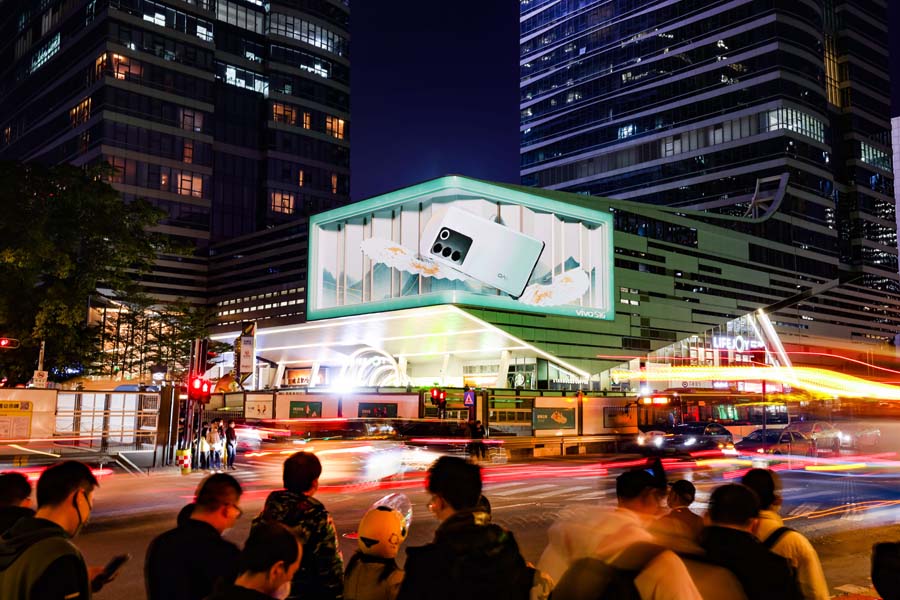 在這條“矽穀(gǔ)大道”的(de)裙樓之上,新落成了一塊由上(shàng)海三(sān)思承(chéng)建的606㎡戶外裸眼3D大屏。這片覆蓋上市公司(sī)多達110餘家、總市值為4.25萬億元、占南山區上市公司總市值70.83%的科技園區,又新添(tiān)了一處“流量密碼”。