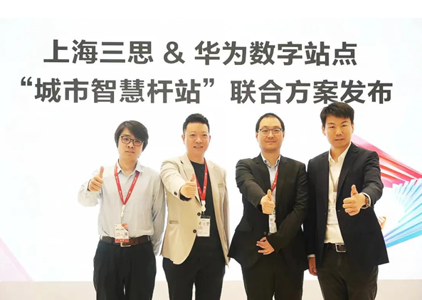 上海三(sān)思(sī)和華(huá)為強(qiáng)強聯合打造(zào)、發(fā)布的(de)城市新型智慧杆站及解決方案,也重磅亮相,成為大會的耀眼亮點,引來(lái)政企客戶的(de)長時間駐足體驗。ICT等新技術使燈杆成為智慧城市中感知(zhī)、交互等各(gè)類場景的重要載體、神經末梢,引(yǐn)領智慧城市更快地縱深化。